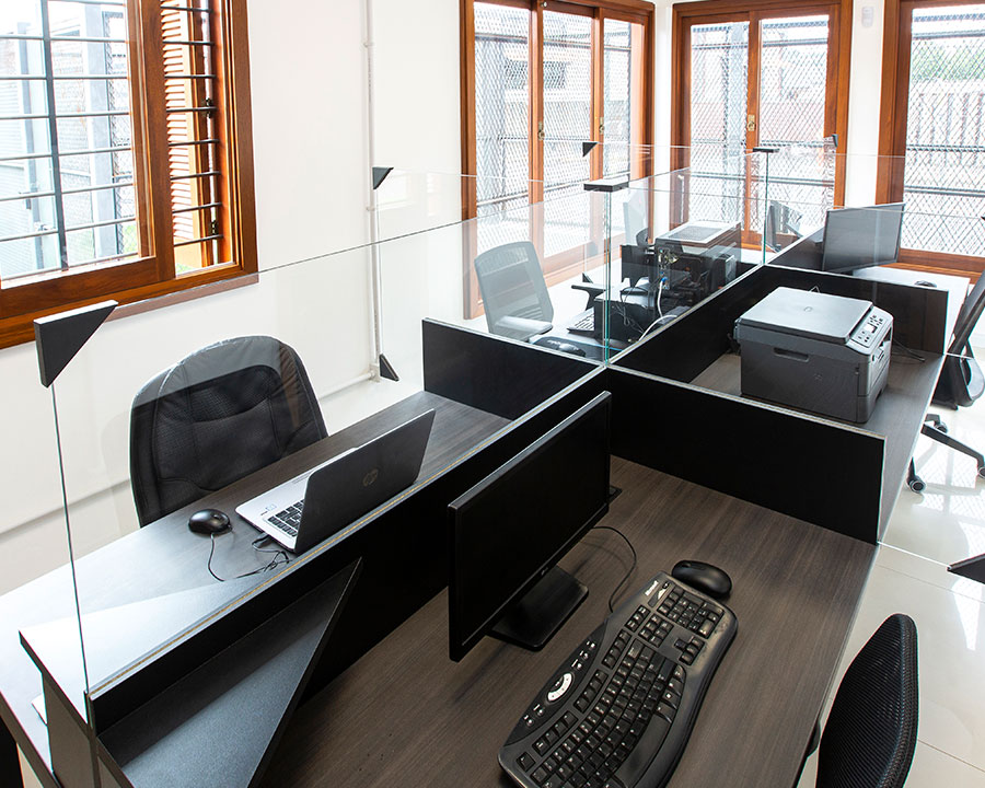 Integrada à parte administrativa está o laboratório construído com todos os dispositivos de segurança visando a saúde dos pesquisadores.