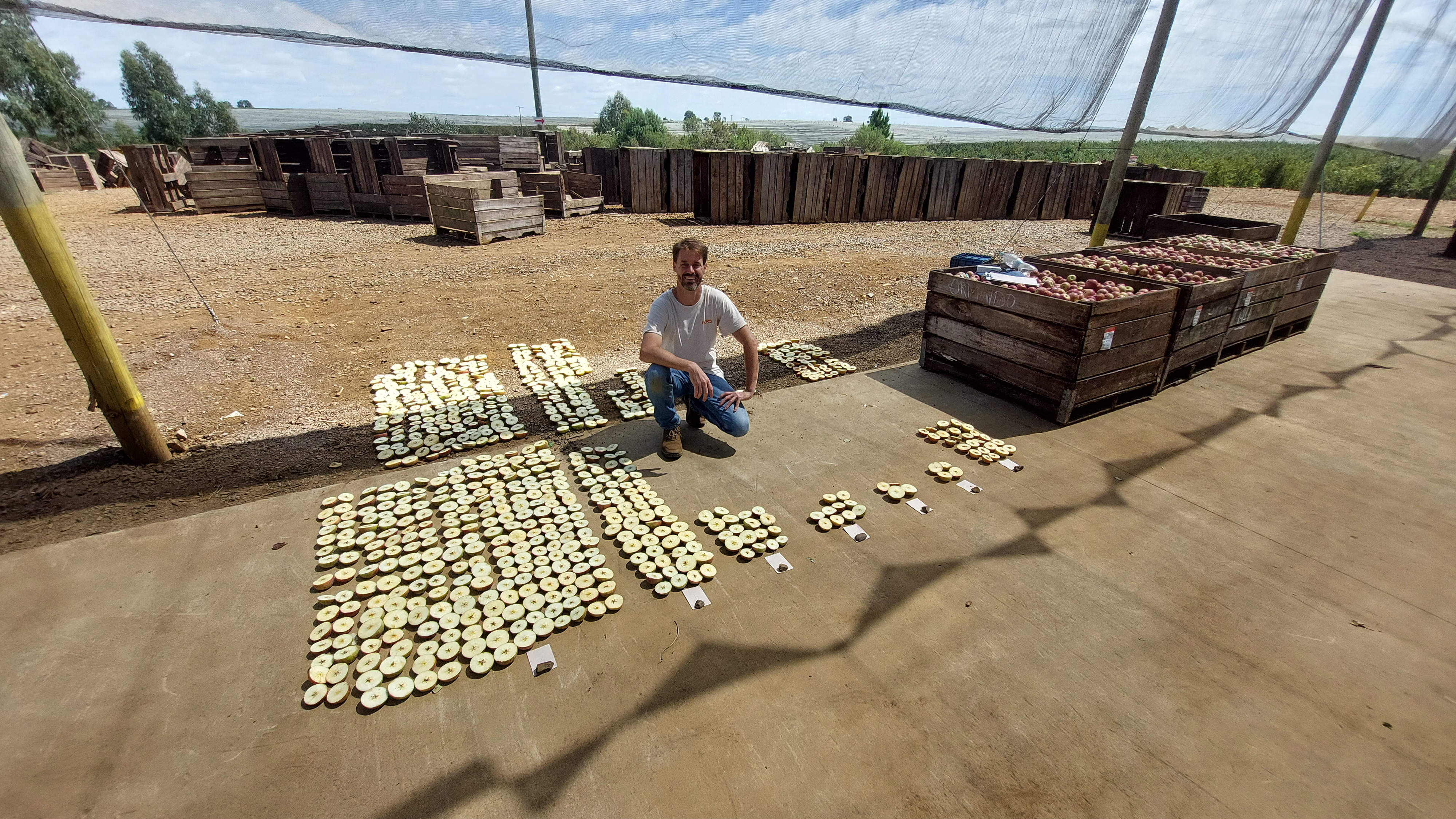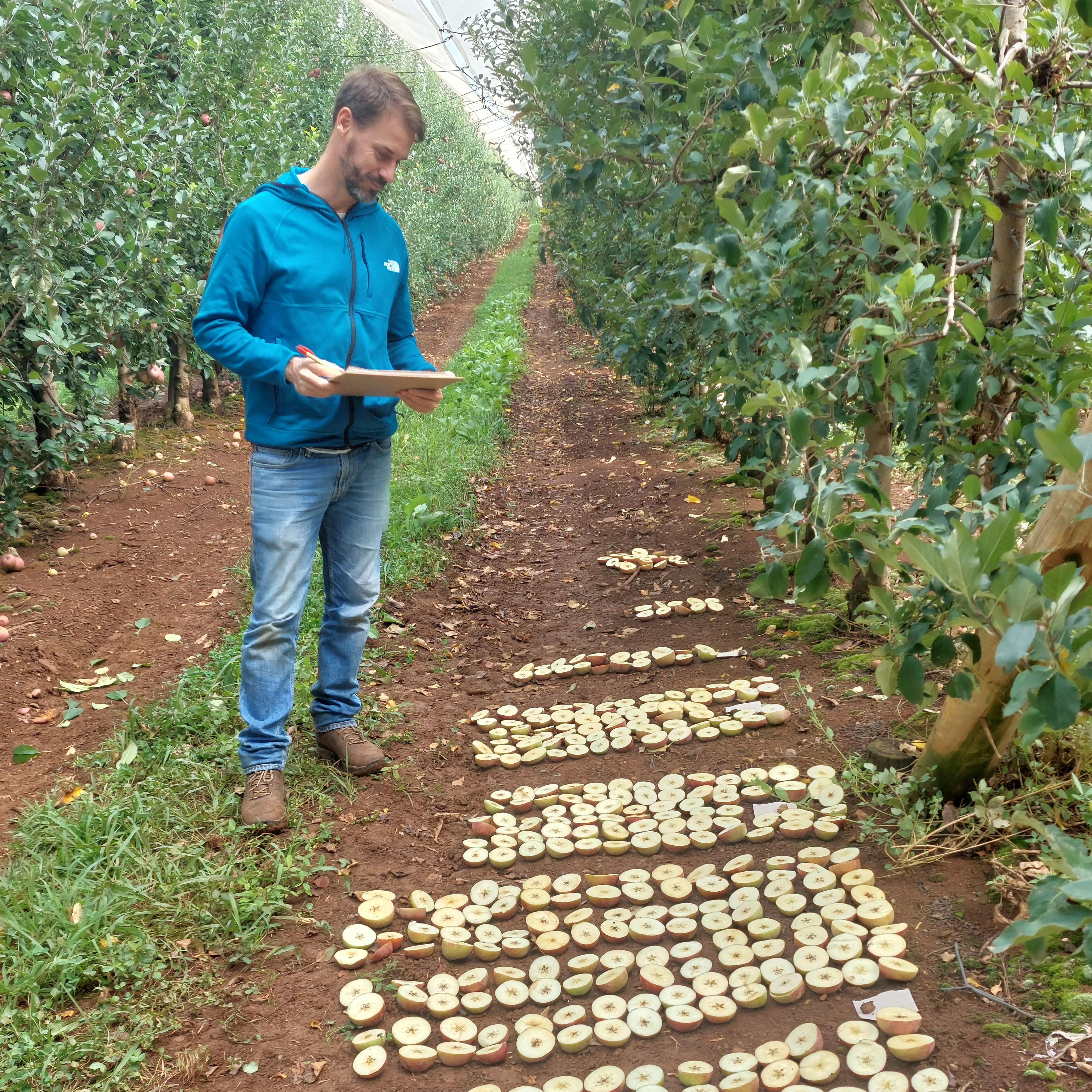 Esses dados foram obtidos através de avaliações em diversas fazendas, incluindo pomares telados e não telados, com práticas de manejo distintas. Mais de 6.000 maçãs foram coletadas e analisadas.
